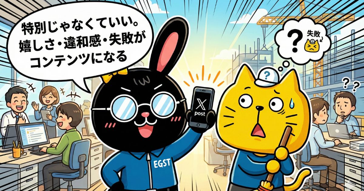 今日、あなたが現場で見た空の色、社員との何気ない会話、あるいはランチで失敗した話。そんな些細なことからで構いません。